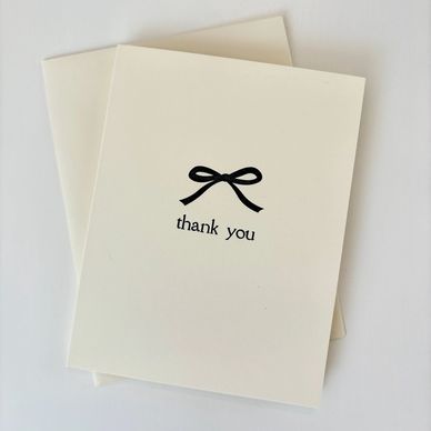 Set of 6 thank you notes letterpress printed on 100% cotton heavyweight paper with kraft paper envelopes.
